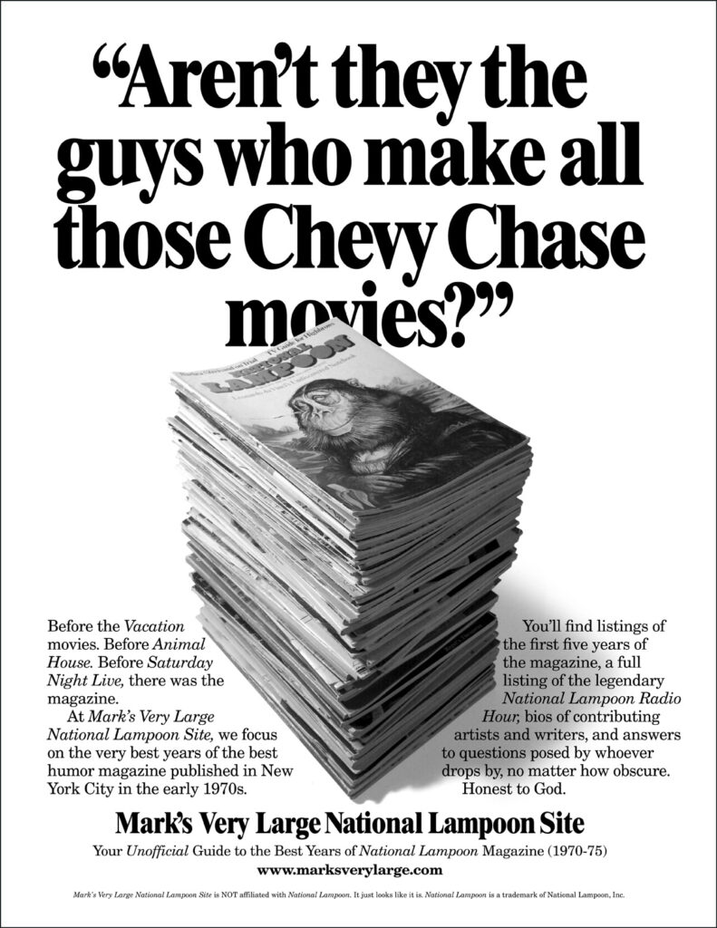 Mark's Very Large Plug. You might think, as you wade through this site, that I have no life. Not true. I spend about two days a year working on Mark's Very Large National Lampoon Site. The rest of the time I make fonts. You can see my real website here. I also have an “art” website where I post caricatures and other stuff. For Lampoon-related stuff and site updates, follow me on X (Twitter). Also, check out my YouTube channel, where I post videos related to National Lampoon.